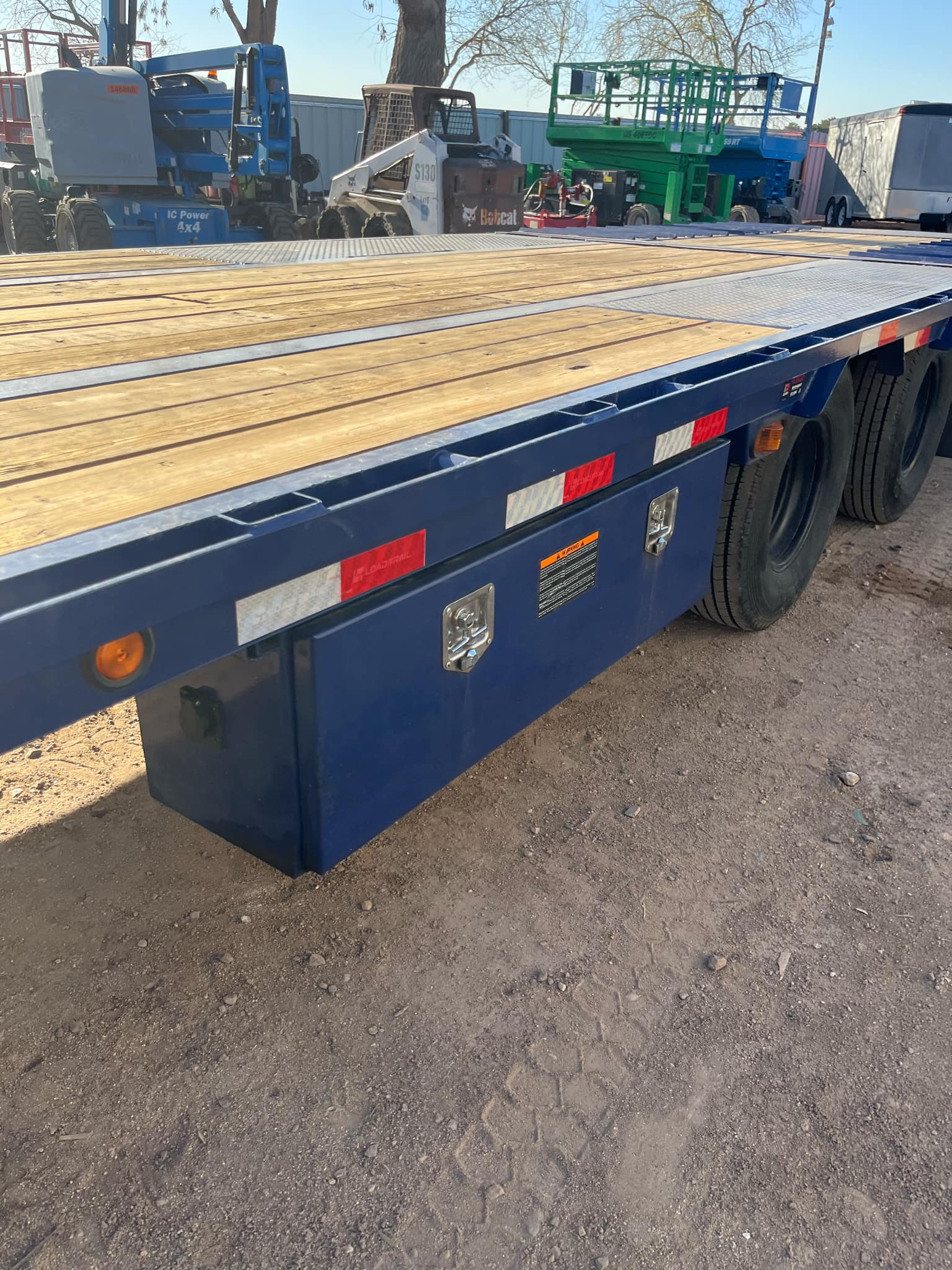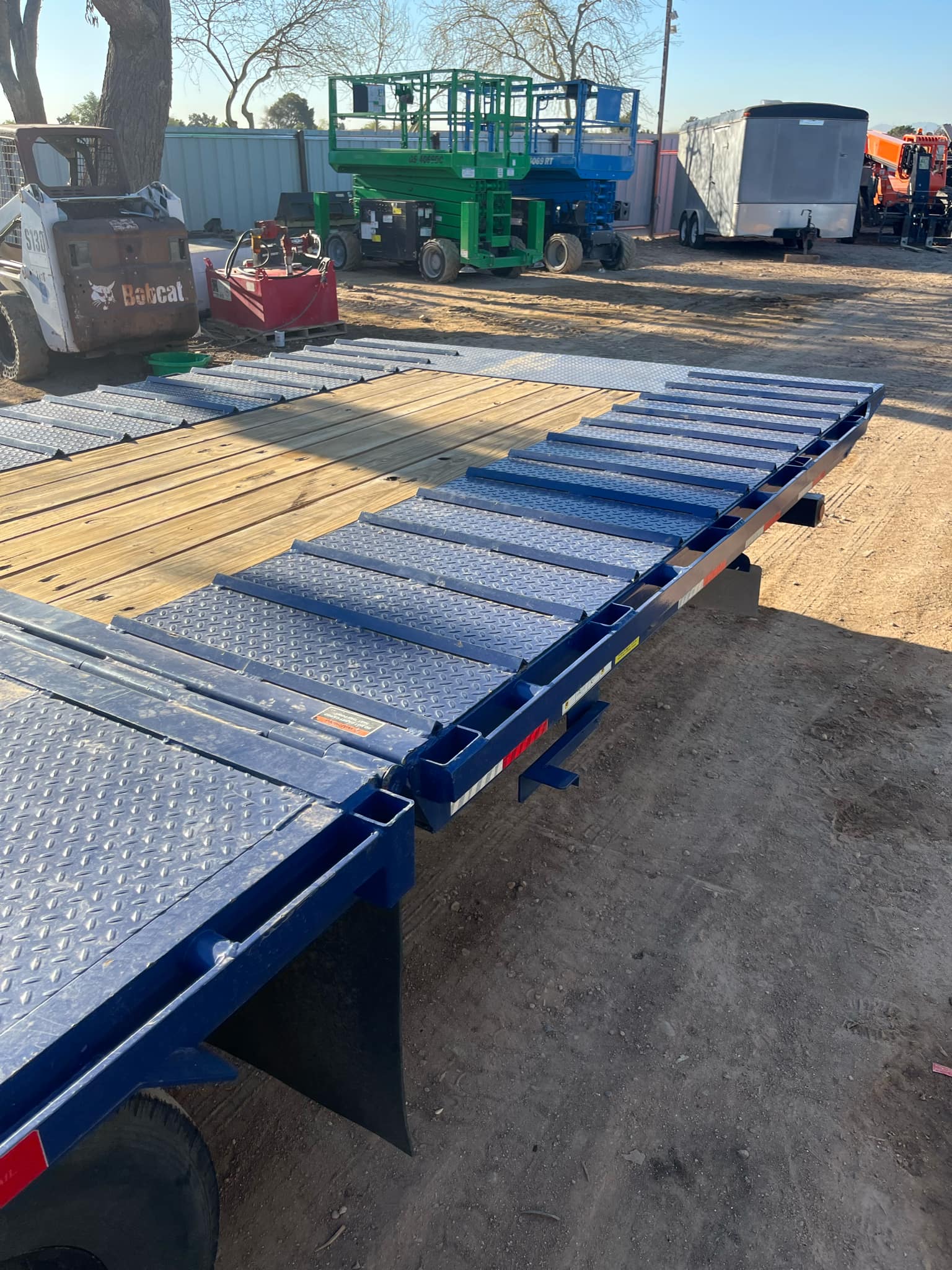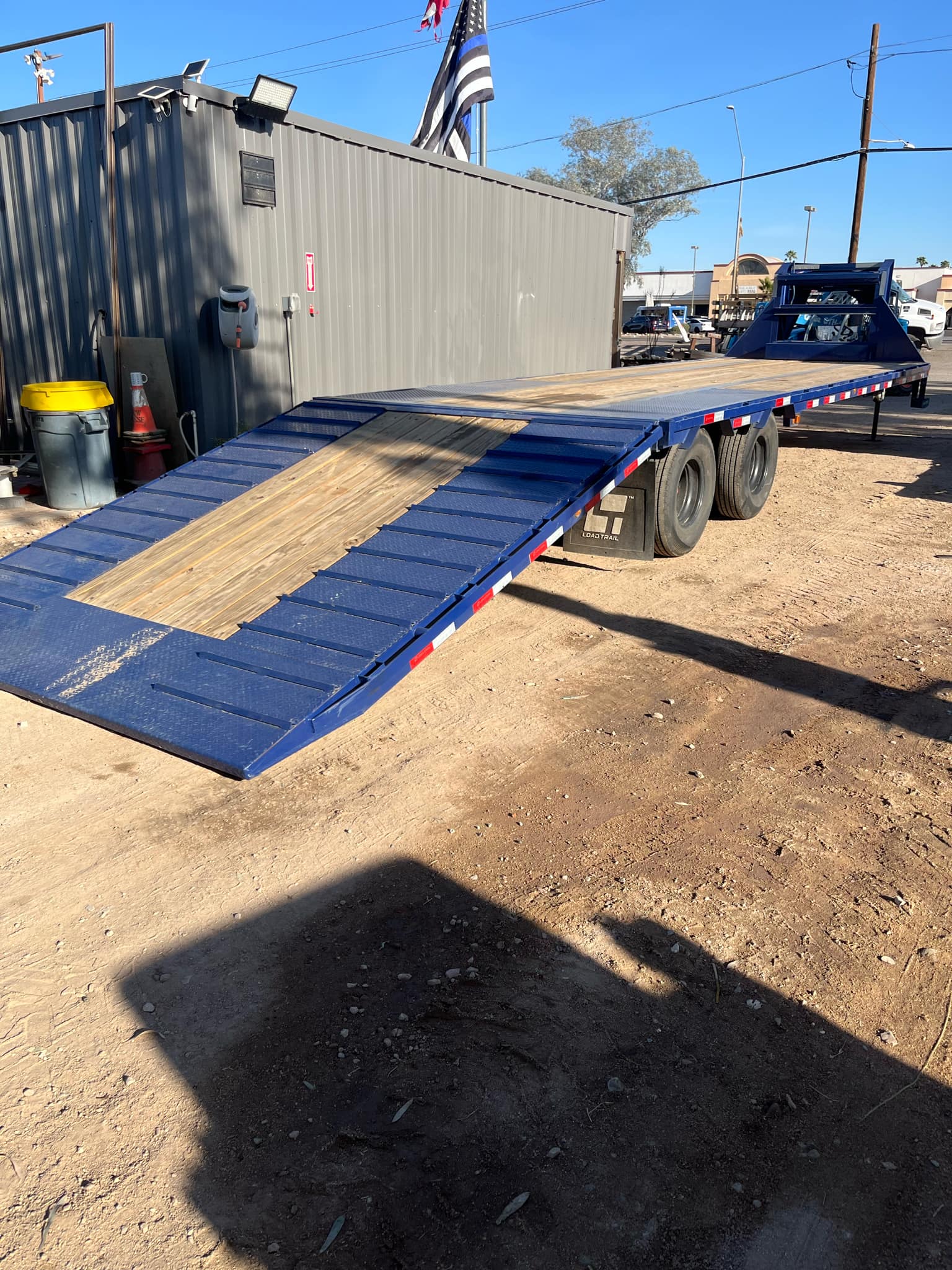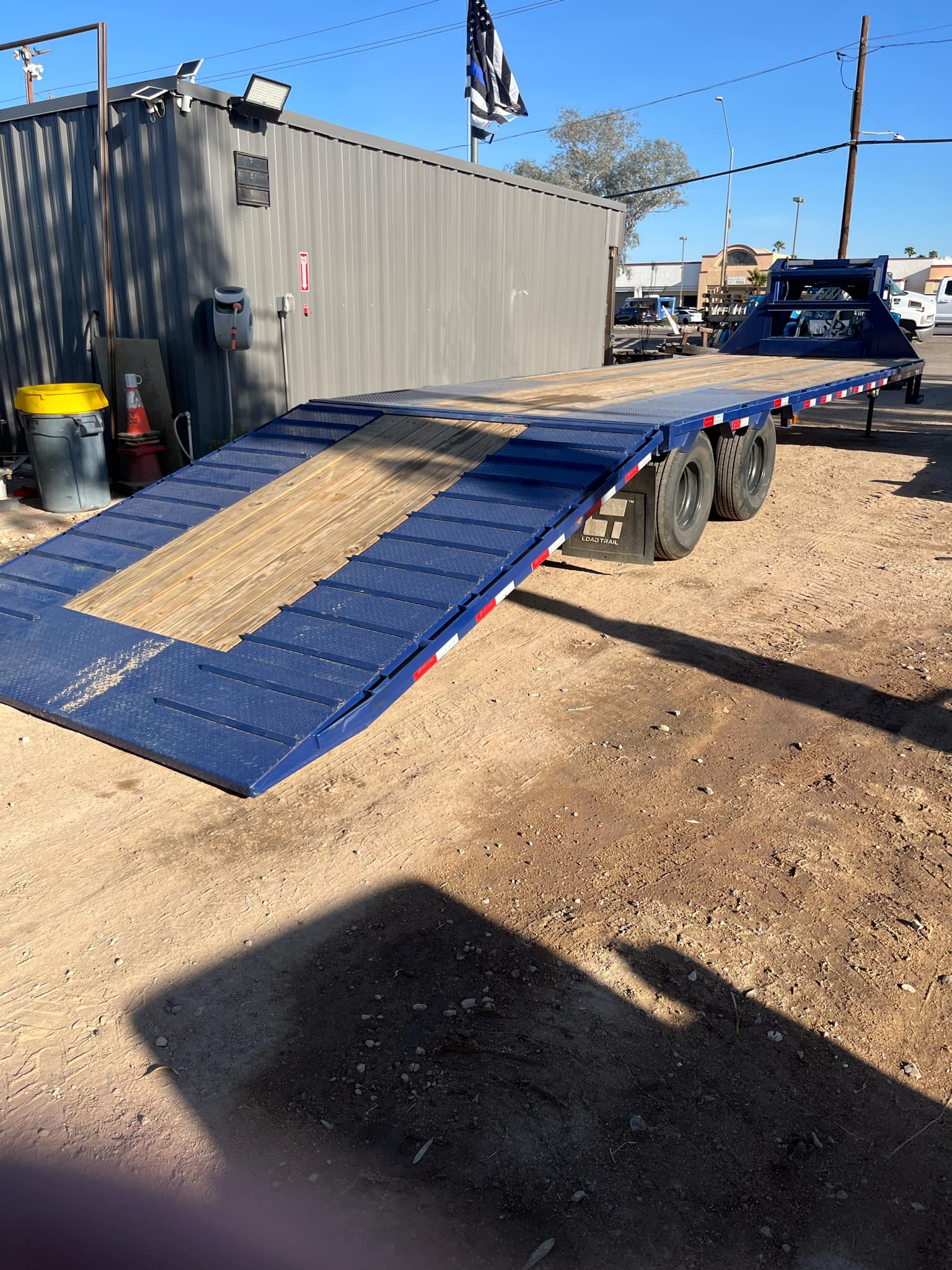 The Load Trail GL22 34′ Gooseneck Low-Pro Deckover Trailer is a heavy-duty trailer designed for demanding hauling tasks. While the standard configuration includes dual 12,000 lb Dexter electric brake axles.This trailer is well-suited for transporting heavy equipment, machinery, and other substantial loads. The hydraulic dovetail facilitates easier loading and unloading, especially for low-clearance equipment.